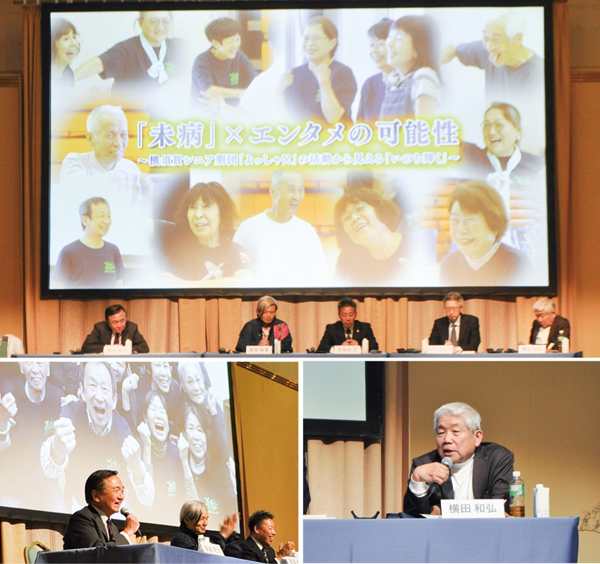 「未病とエンタメの可能性」について議論するセッションでは、スピーカーの一人として横須賀を拠点に活動するシニア劇団「よっしゃ‼」を率いる劇作家の横田和弘さんが登壇。シニア劇団について「みんなのポジティブな表情と笑顔を見てください」と話し、稽古風景などをまとめた映像を流した。
