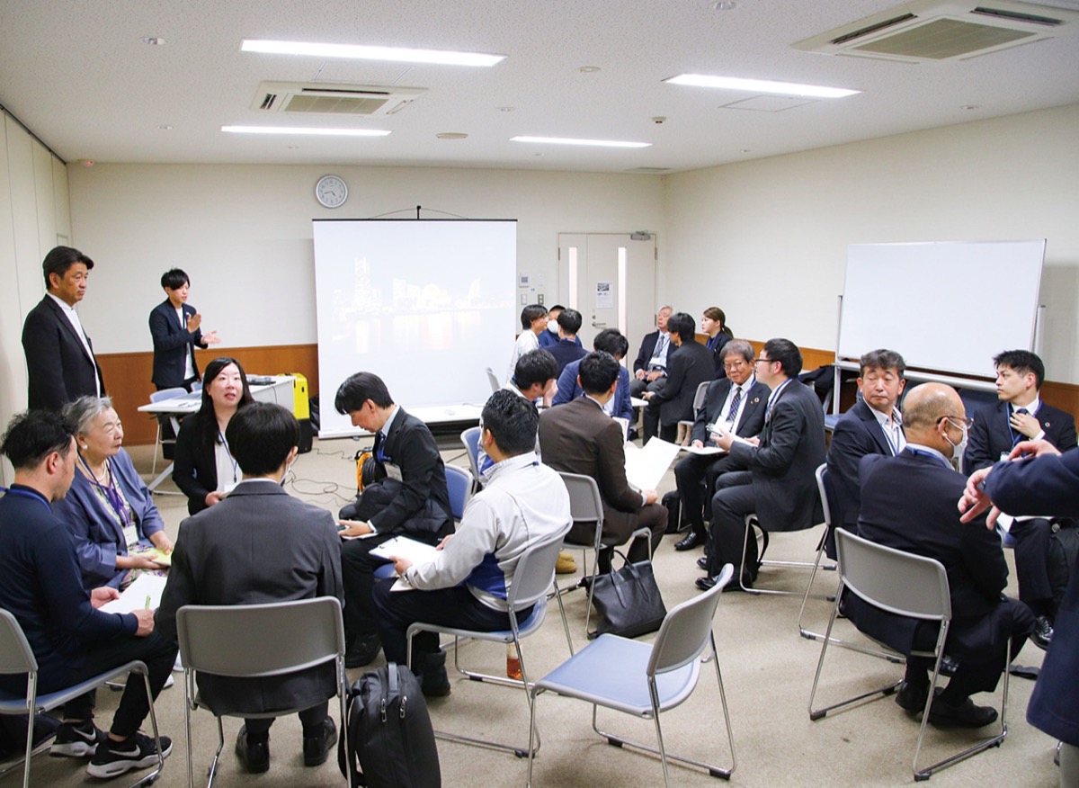 2回目の開催となる今年は約60人が参加。加藤憲一市長は「パートナー同士が知り合い、つながることで進む取り組みも大いにある。この場を活用いただければ」とあいさつ。また原会長は「闊達な意見交換をし、(目標達成の)2030年以降も続くサステナブルな取り組みになれば」と期待を込めて話した。