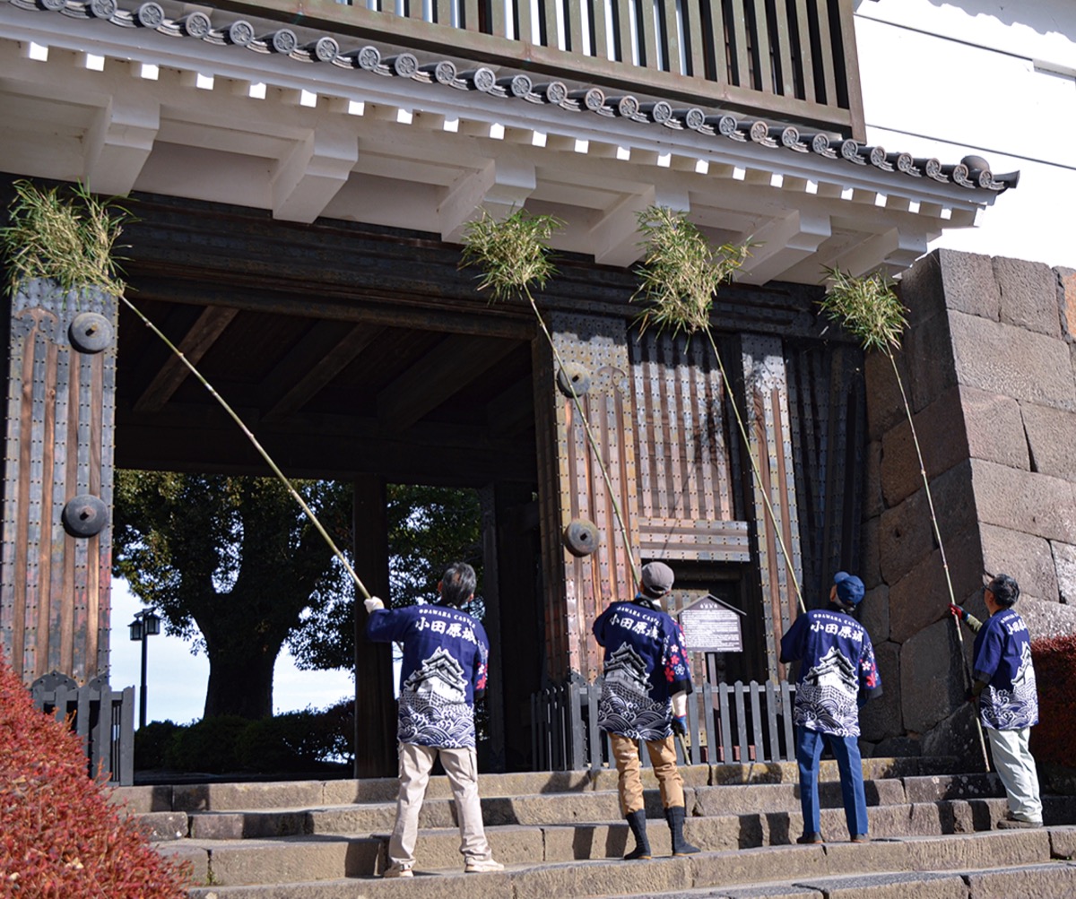 小田原城で12月11日、恒例の「すす払い」が行われ、一年で溜まったすすやほこりを清掃した。