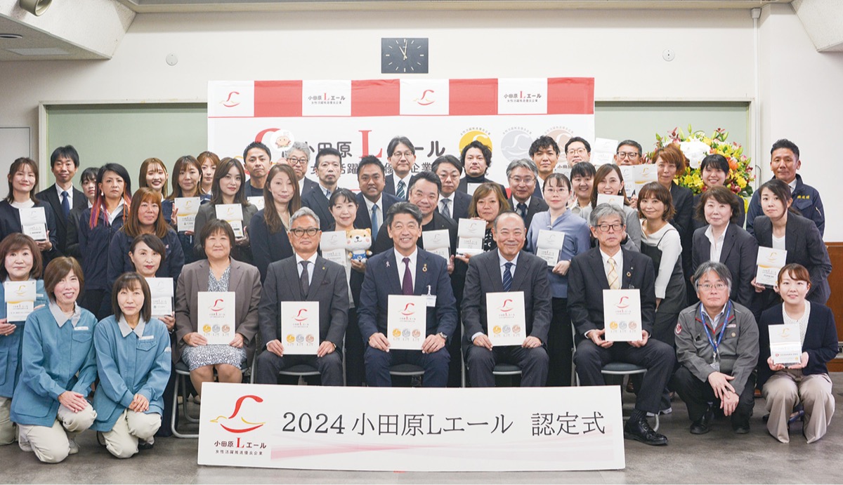 小田原市女性活躍推進優良企業認定制度「小田原Lエール」の2024年度の認定がこのほど行われ、新規17社と更新51社(5社がステージアップ)が発表され、11月12日に市役所で認定式が行われた。今年度の認定で小田原Lエール企業は全105社となった。