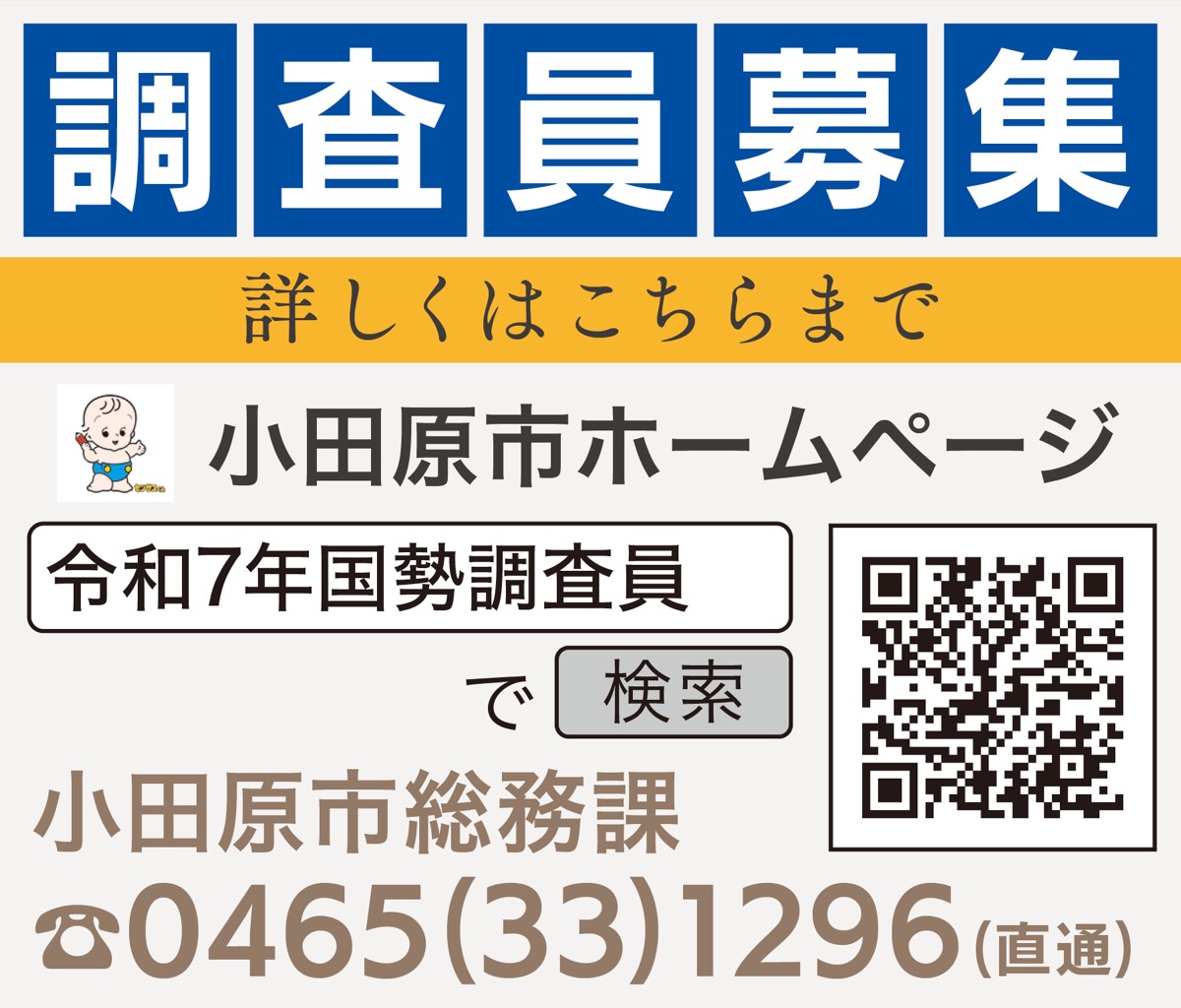 小田原市が今年実施される国勢調査の調査員として活動する市内在住の方を募集している。