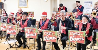 同コンサートは「入院中の癒しになれば」と同院の介護福祉士らの企画・運営で実施。神奈川県内で演奏活動を行う「歌謡ビックバンド レッドベスターズ」を招き、歌謡曲からクリスマスソングまで全7曲が披露された。