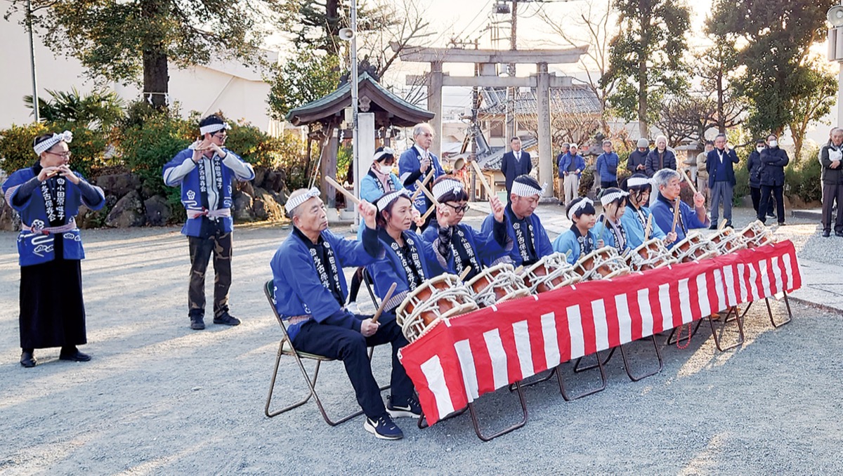 この日は小学生から大人までのメンバーが奉納演奏を披露。地域住民や牧島かれん衆議院議員、佐々木奈保美衆議院議員、小澤良央県議らが見守った。磯崎会長は「昨年は小田原オペラの公演やITTO理事会での演奏など、新しいことにチャレンジしてきた。今年もいろいろなところで演奏していきたい」と話した。