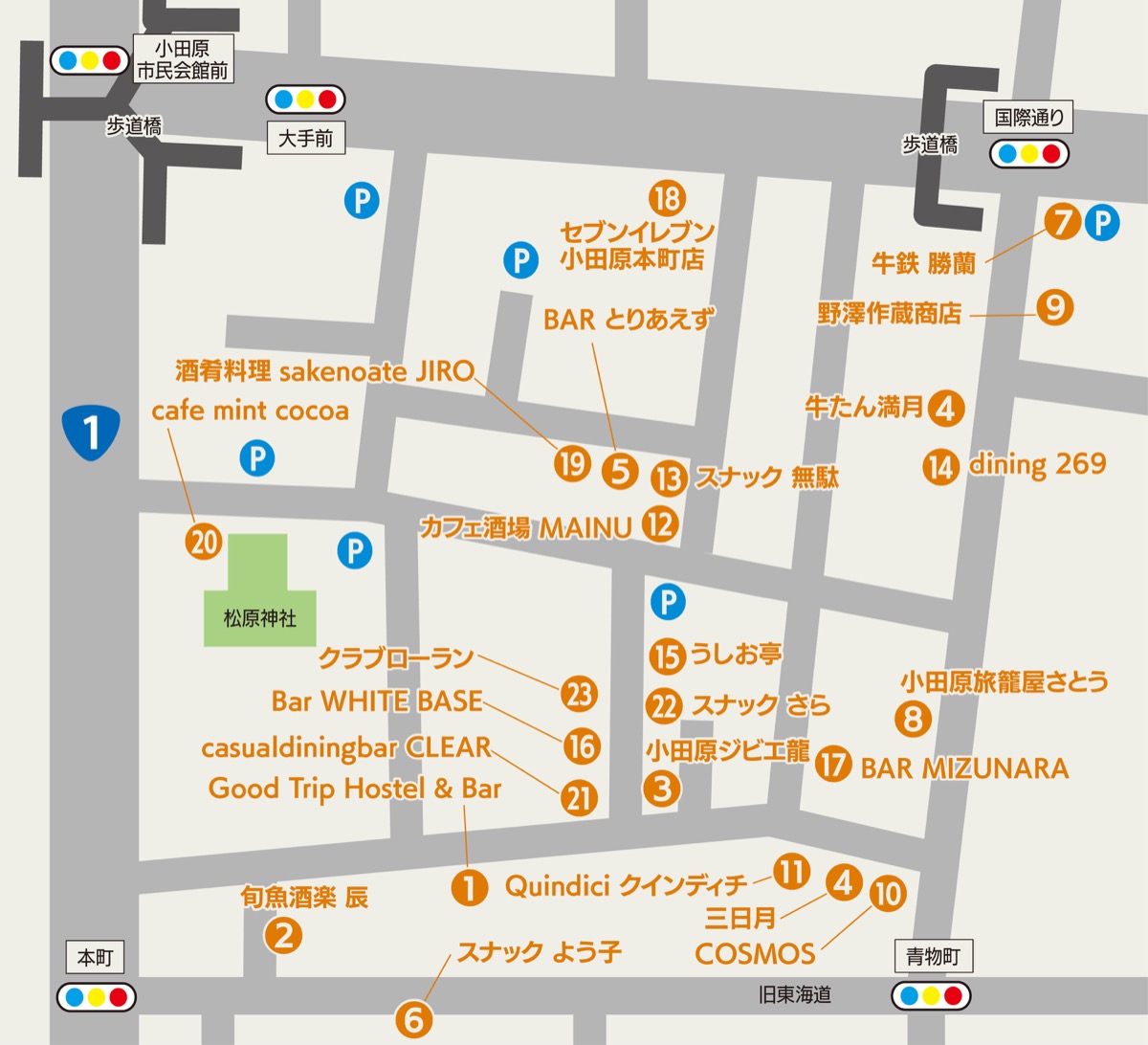 アクセスは、小田原駅から歩いて約10分。国道1号と旧東海道に囲われた小さな区域に個性豊かな個人店が軒を連ねる=地図。駅から遠いにもかかわらず、あえて同エリアを選んで出店・営業を続ける店主たちと、そこに通う客たちとの間には独特の一体感が漂う。