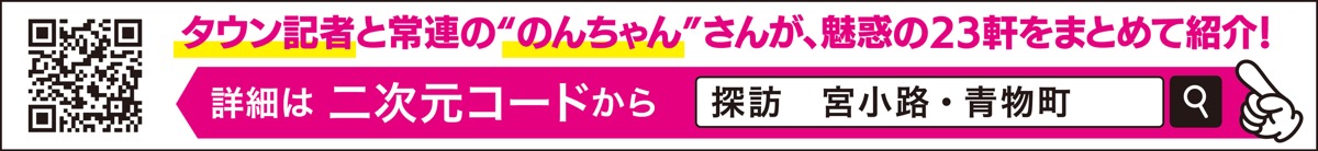 昨年だけで約10軒の新店舗がオープンした小田原市の宮小路・青物町エリア。歴史ある街に新しい風が吹いている。変化の様子や個々の店舗の魅力を探ろうと、タウンニュースは同エリアを探訪した。まちの今と新旧入り混じる23店舗を紹介する(詳細は二次元コードから)。