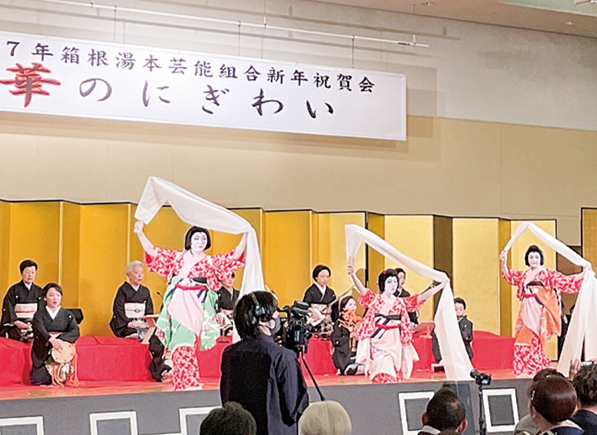 湯本富士屋ホテルで1月8日、新年賀会「華のにぎわい」を開催した。来賓を含む招待客約300人が訪れ、箱根の芸者衆約100人が迎えた。舘美喜子組合長は「今年は見番をカフェバーとして開店する。無理せず愛されるお店にしていきたい」と抱負を語った。
