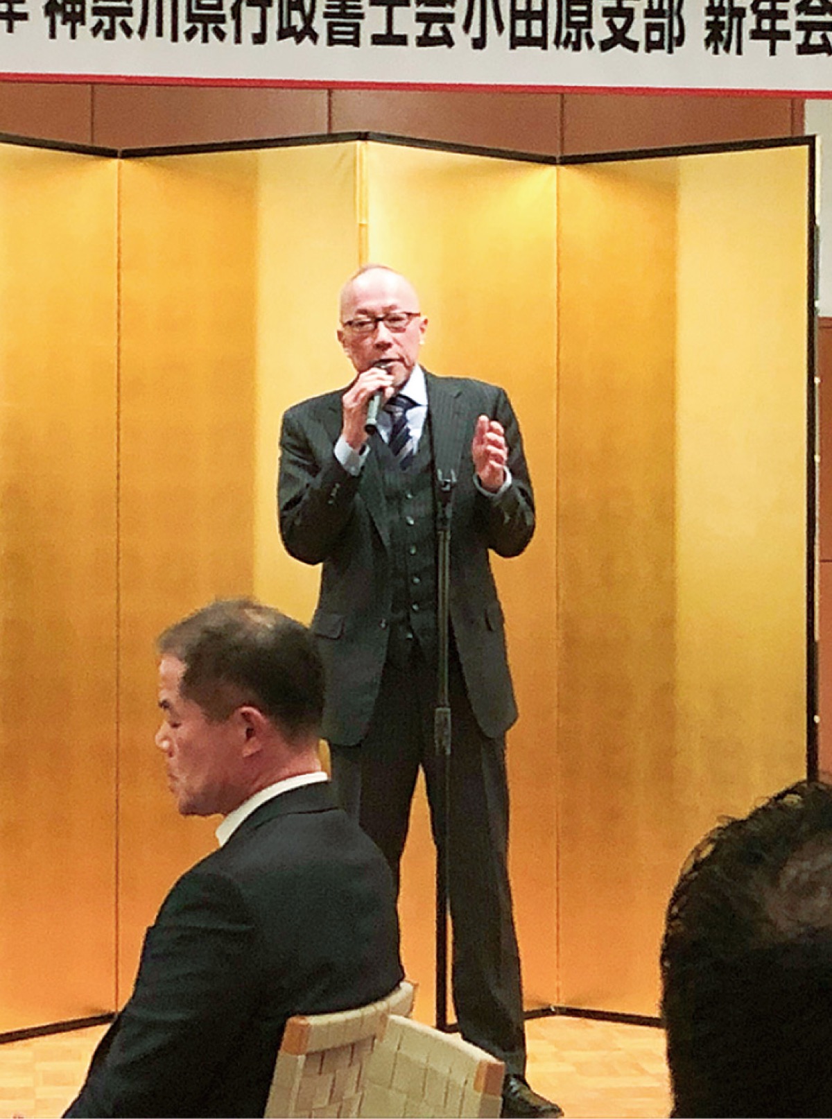 1月11日、報徳会館で新年会を開催した。来賓や会員を前に、小泉伸支部長は「行政各所との連携をはかり、相談業務での協力体制を推し進めたい。また行政手続きのデジタル化にも協力して行きたい」と抱負を述べた。同日開催の研修会では、「国籍法の基礎を学ぶ」をテーマに業務のひとつである帰化申請の根拠法の理解を深めた。