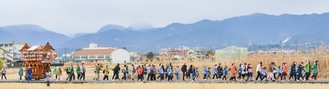 150人で「山車曳き」