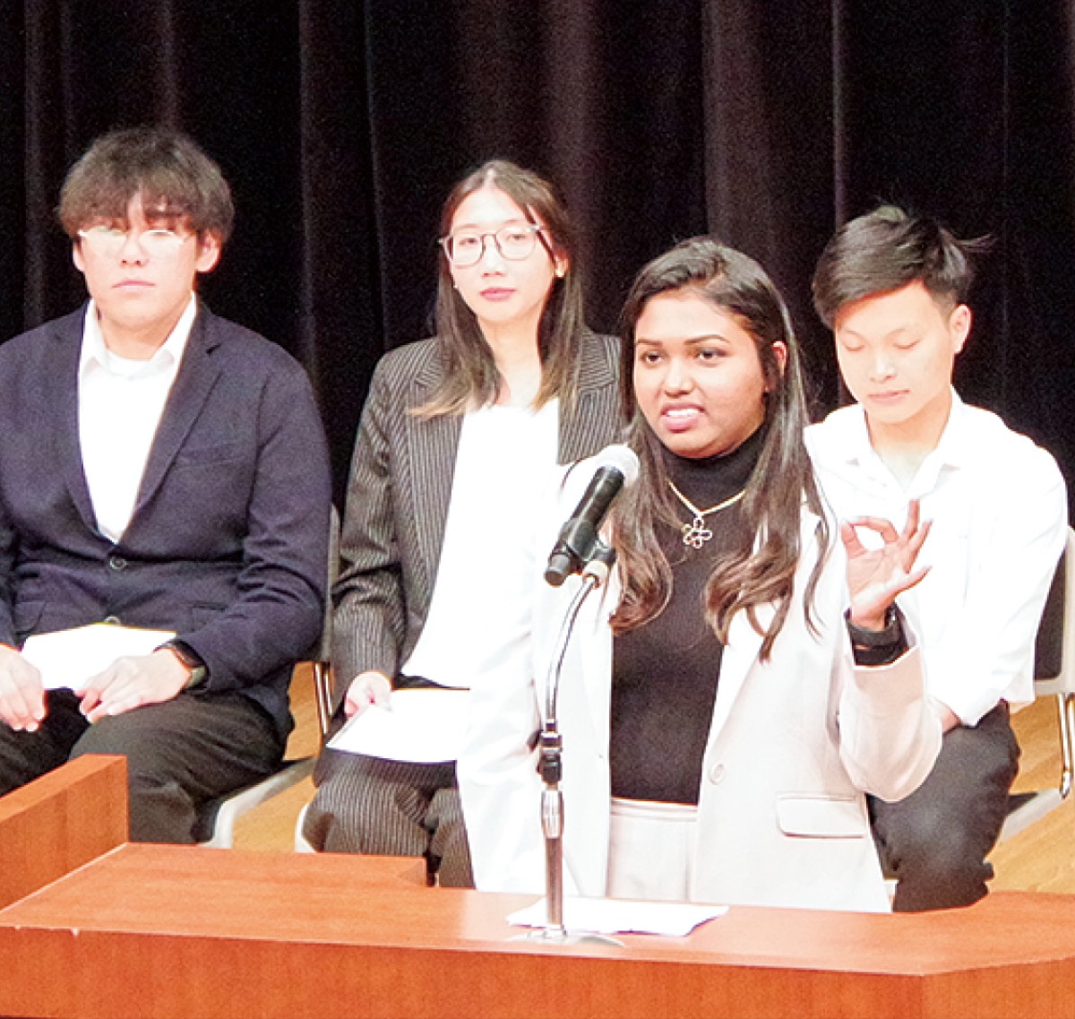地域で暮らす外国人が学業に励む様子を知ってもらおうと、これまでの学内イベントを刷新し、昨年初めて一般の来場も可能にしたリバティのスピーチ発表会。前回はペルーやネパール、フィリピンなどから来日した学生が日本語表現の難しさや母国のこと、日本での暮らしなどを発表した。