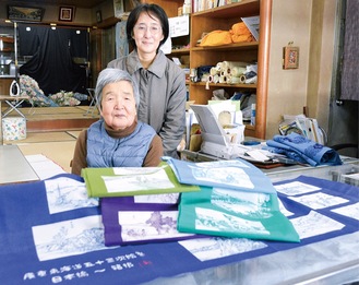 「『いつか手ぬぐいにしたい』と言って描いていた」と山田さんの妻、渥子さん(86)は目を細める。昨年末に完成し、「本人に見せることはできなかったけど、残された側の思いをかたちにできた」と満足気に笑みを浮かべる。