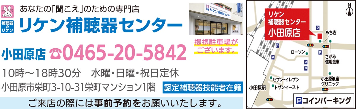 補聴器選びで失敗しないようにと、補聴器専門店『リケン補聴器センター 小田原店』が「春の補聴器体験会」を3月31日(月)まで開催。「フォナック」「オーティコン」「スターキー」など各種メーカーの中から自分に合った補聴器を、認定補聴器技能者や経験豊富な専門スタッフとともに選ぶ。「充電式やAI搭載型も取り揃えています。補聴器は値段が高い=よく聞こえるとは限りません。まずは試してみてください」と店長。