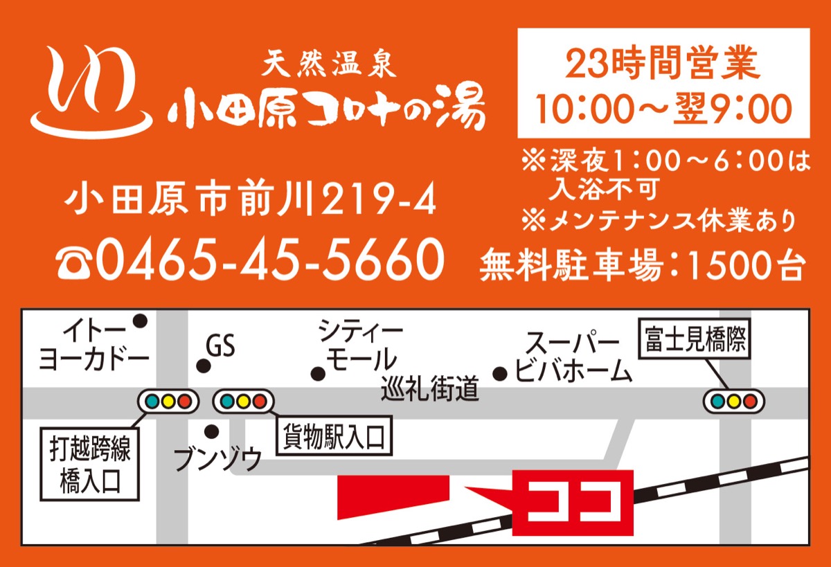 「天然温泉 小田原コロナの湯」は大浴場、電気風呂、ジェットバスなど多彩な風呂が楽しめる車ですぐの温浴施設。