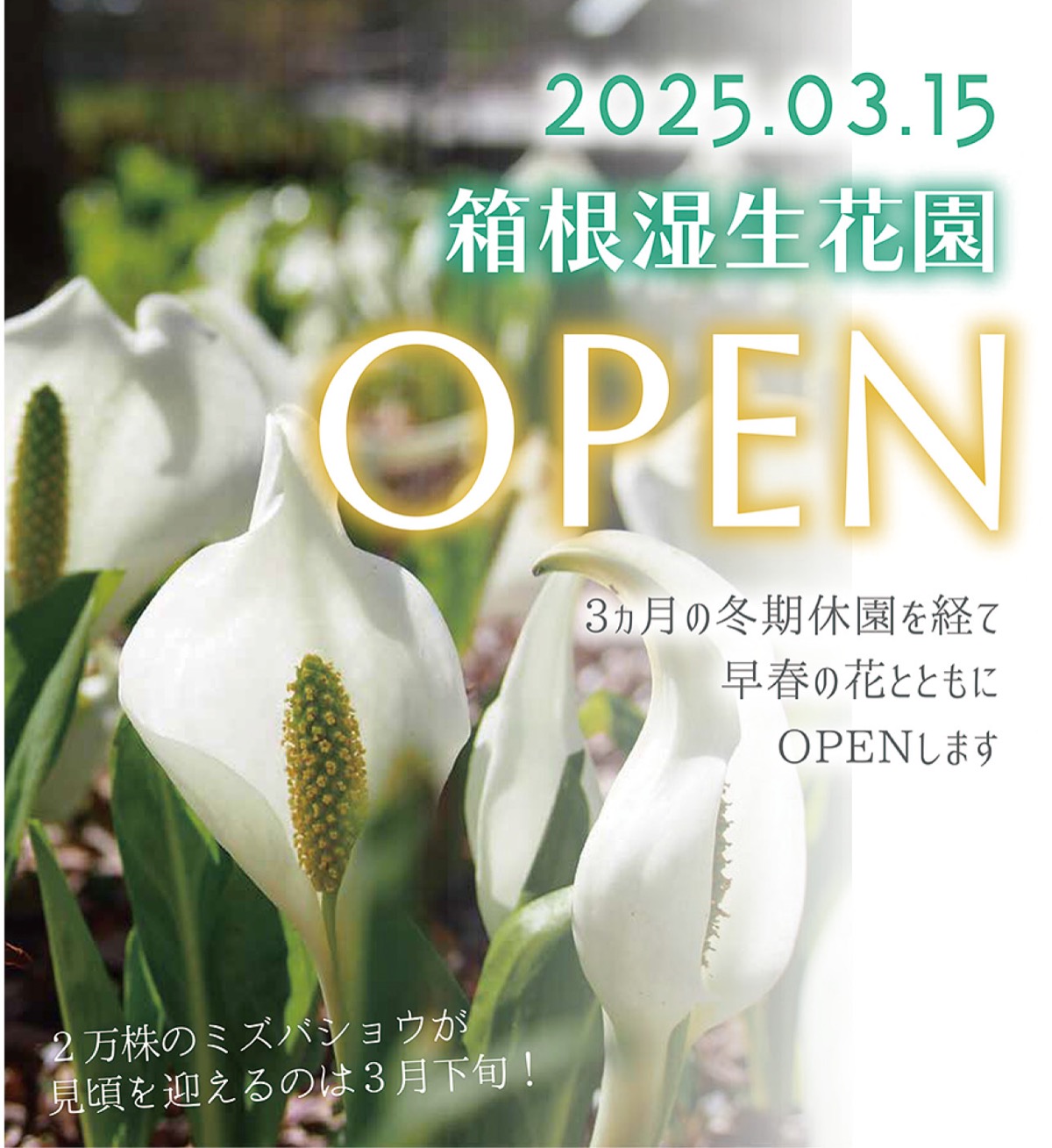 箱根湿生花園(仙石原817)がきょう3月15日(土)、3カ月間の冬期休園を経てオープンする。