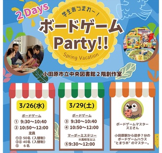 小田原市立中央図書館で3月26日(水)、29日(土)に「ボードゲームパーティ」が開催される。