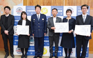 対象となった3件はいずれも2月に発生。高額の現金引き出しや振込手続きのために訪れた利用者に対し、職員が声かけを実施し、理由などを確認した上で警察に通報した。確認の結果、投資名目の送金要求、Webサイトの退会費用、警察官を名乗る人物による指示などの特殊詐欺と判明し、それぞれ職員が積極的な声かけを行い、3件合わせて約1550万円の被害額を未然に防いだ。永野進警察署長(取材時)は「普段から気を付けていただいているおかげ。1件でも減らせるように一緒になって取り組んでいきたい」と話した。