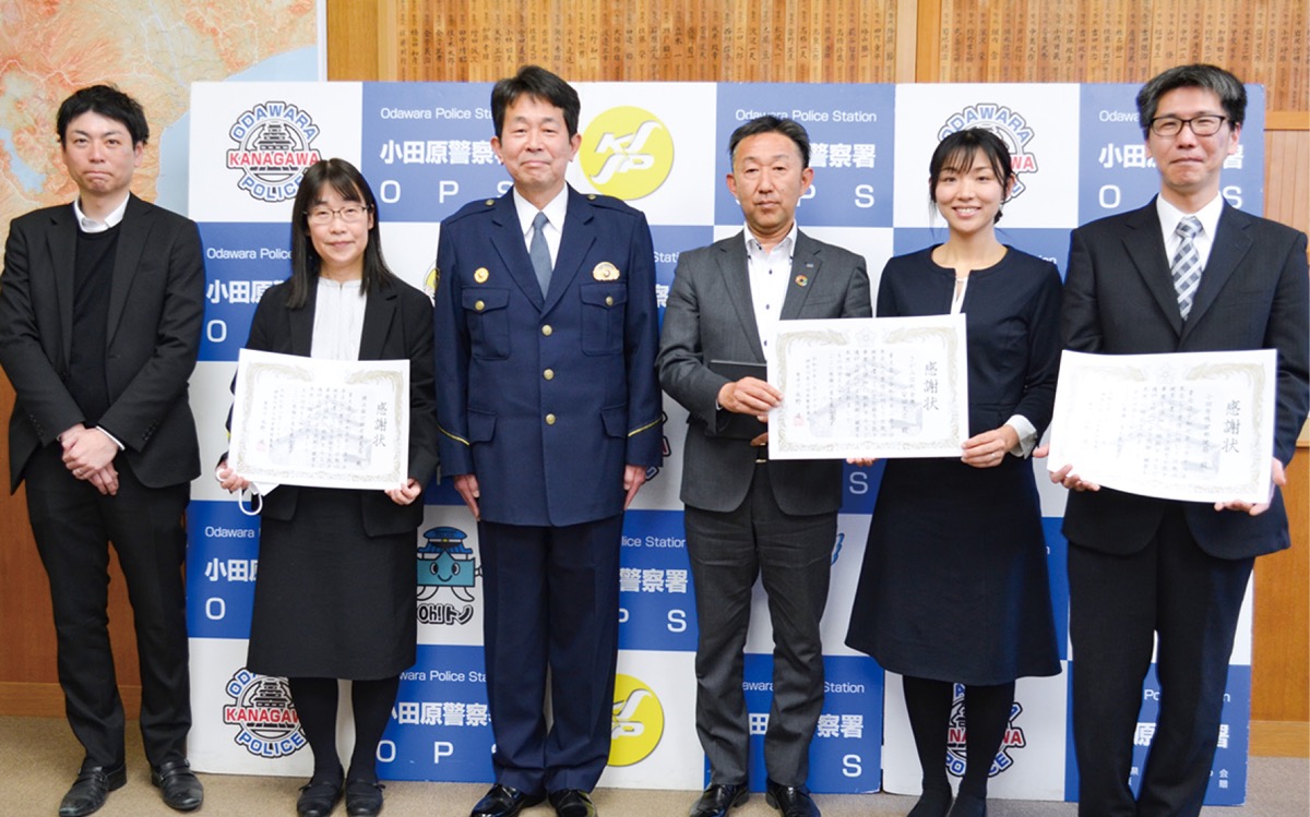 小田原警察署がこのほど、特殊詐欺等の被害を未然に防止した横浜銀行国府津支店とさがみ信用金庫蛍田支店、小田原鴨宮郵便局にそれぞれ感謝状を贈呈した。