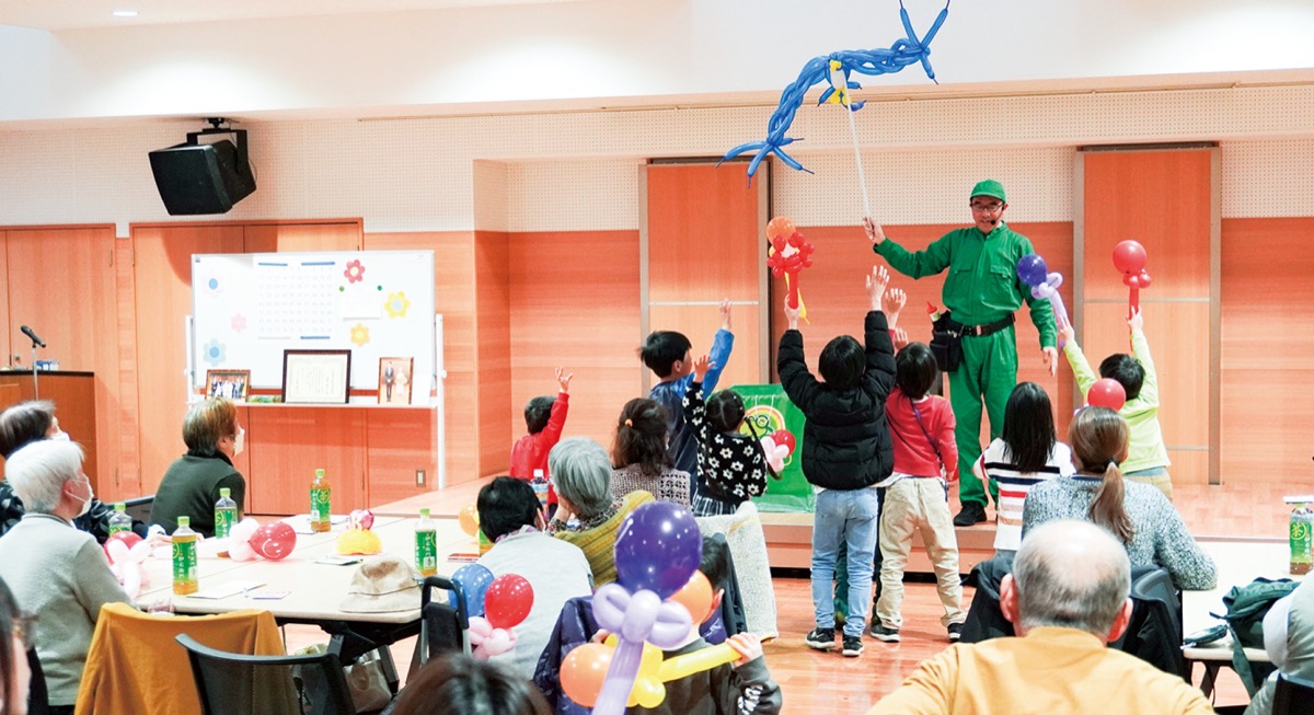 この日はレクリエーション体操やバルーンアートのパフォーマンスが行われ、子どもたちは興味津々。またオリジナルデザートづくりなども行われ、会場は笑顔であふれていた。