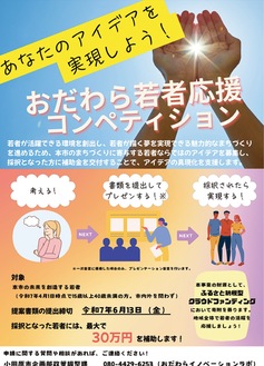 小田原市は、若者が描く夢を実現できる魅力的なまちづくりを進めるため、若者ならではのアイデアの具現化を支援する「おだわら若者応援コンペティション」への参加者を募集している。