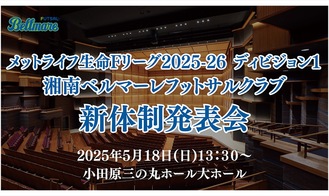 日本フットサルリーグ(Fリーグ)ディビジョン1に参戦している「湘南ベルマーレフットサルクラブ」が5月18日(日)、小田原三の丸ホール大ホールで「新体制発表会」を行う。入退場自由で午後1時30分開始、3時終了予定。