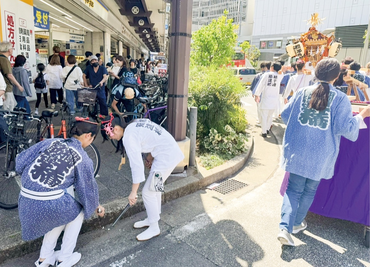 神輿の桑島裕二代表(41)は、「神輿や山車には御霊を乗せており、通る道をきれいにしたい思いもありました」と説明。例大祭を終え、「神輿や山車が通りまちがきれいになって、商店街の方からもありがとうと声を掛けていただきました。お互いに清々しい気持ちになれました」と振り返った。