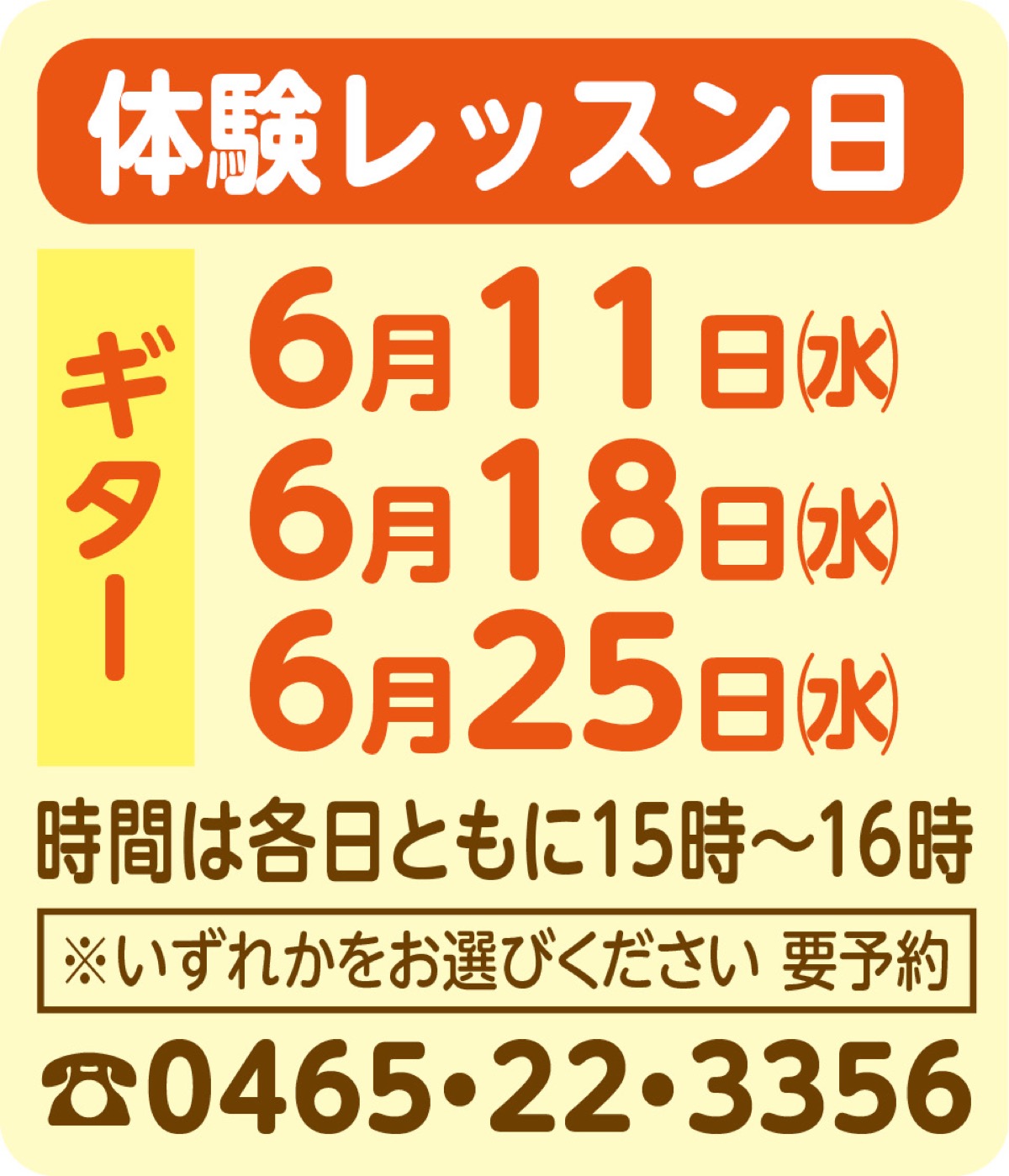 誰もが憧れるギター。弾けるようになりませんか――。メロディ会小田原教室が新クラスのスタートにあたり、中高年の初心者を対象にしたギター体験レッスンを開催する。