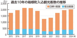 箱根町は6月5日、2024年の入込観光客数が前年比104・1%の2031万人となったと発表した。入込客数が2000万人を超えたのは6年ぶり。