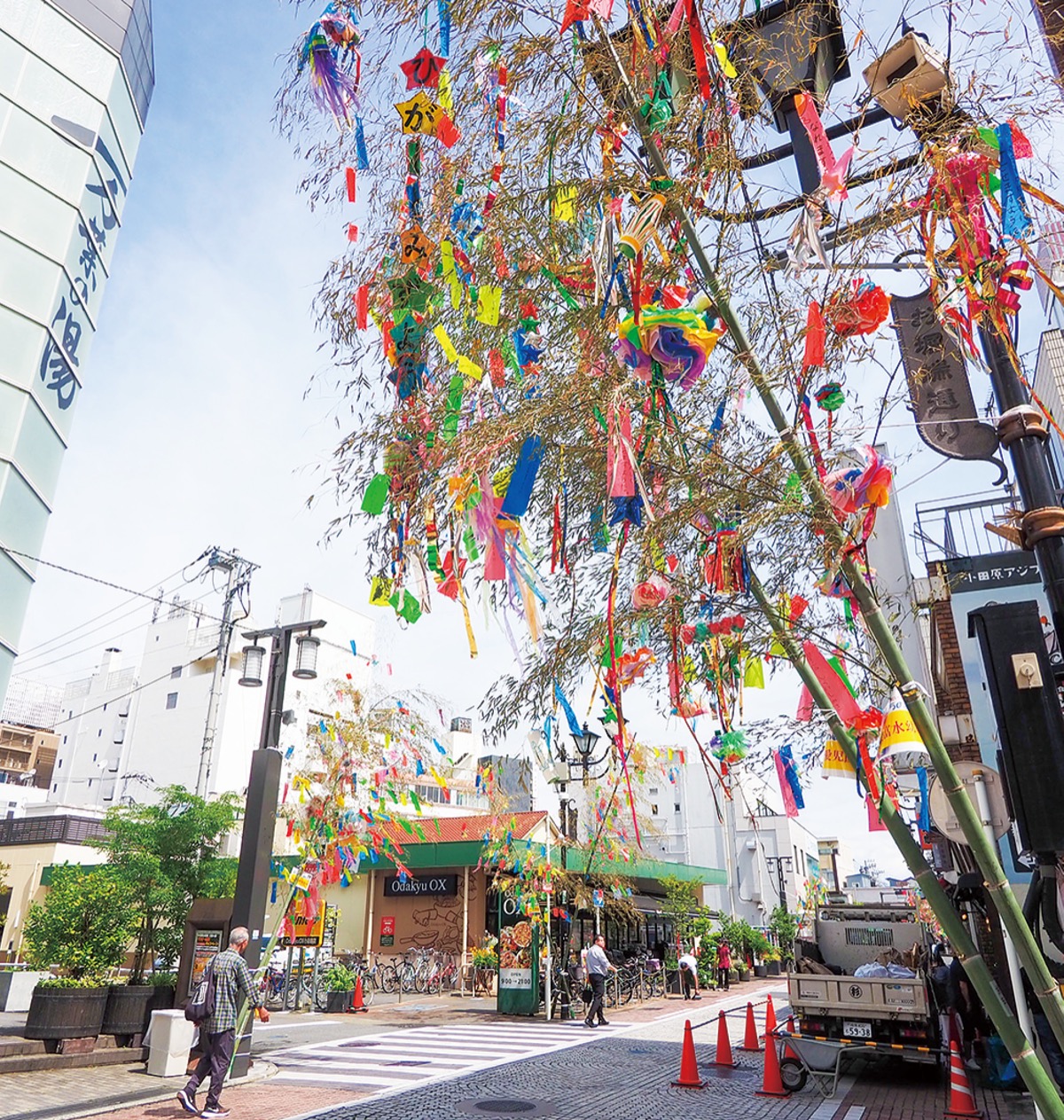 お堀端通りで6月28日(土)から夏の風物詩「七夕飾り」が展示され、色鮮やかな飾りが通りを彩っている。