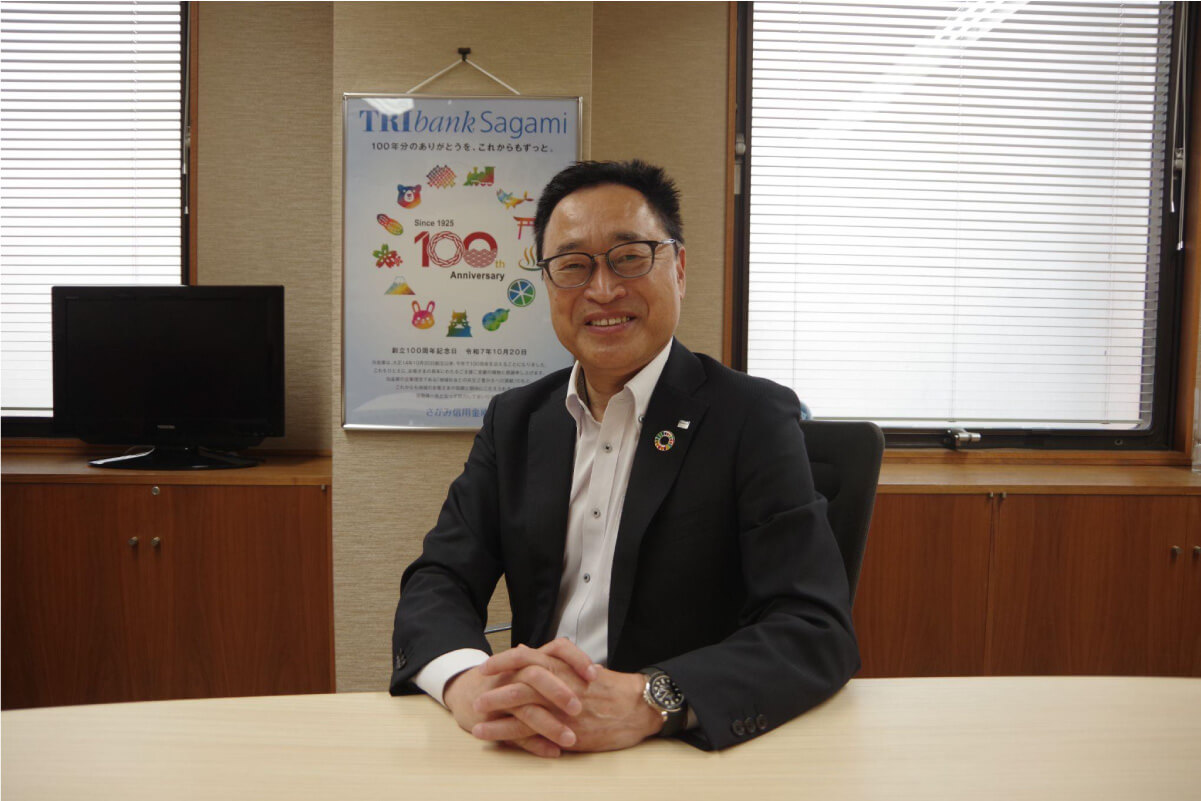 「地域貢献を継続し、『なくてはならない存在』へ。地域と顔の見える関係を築き、地域を盛り上げていきたい。職員にも『さがみ信用金庫に入って良かった』と思える組織を引き続き目指していきます。働きやすい環境が地域定住にもつながり、足元から持続可能な社会の実現に貢献できると考えます」