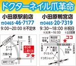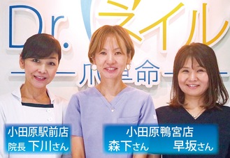 爪が巻いて痛い、不自然に厚い、足裏のガサつき、タコや魚の目など足の悩みに応えているのが「ドクターネイル爪革命」。全国200店舗が加盟、専門セラピストが年間23万件の相談に応じる日本最大級のフットケア専門店だ(小田原駅前店、小田原鴨宮店あり)。
