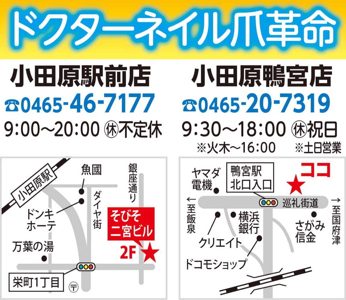 鴨宮店…鴨宮349 石黒ビル1階D 小田原駅前店…栄町2-13-1そびそ二宮2A