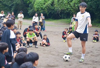 町野選手は「目標を達成するには練習しかない。トレーニングして夢を掴んで」とエールを送った。PK対決でゴールを守った小久保一樹さん(東富水小)は「ボールに触ることはできたのであともう少しだった。たくさん練習して町野選手みたいに夢を掴みたい」と話した。