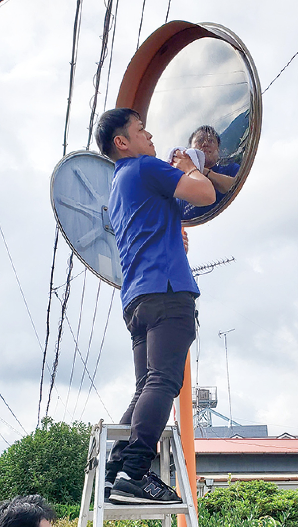 この日は、メンバー12人で湯河原小学校と吉浜小学校の通学路のゴミ拾いや、カーブミラー約40カ所を約1時半かけて清掃した。