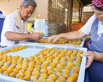 作業は8月末まで続き、干したウメはおけで寝かせて11月半ばごろ出荷される。
