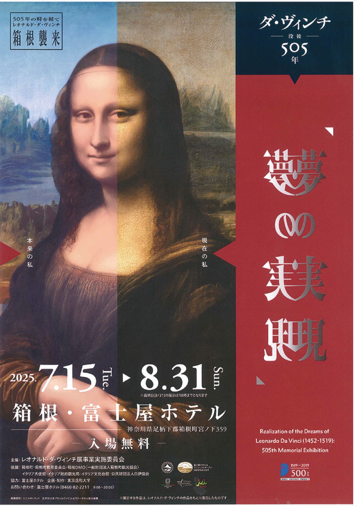 富士屋ホテル(箱根町宮ノ下)で8月31日(日)まで、「ダ・ヴィンチ没後505年 夢の実現」展が開催されている。(最終日の展示は午後6時まで)、入場無料。主催はレオナルド・ダ・ヴィンチ展事業実施委員会。