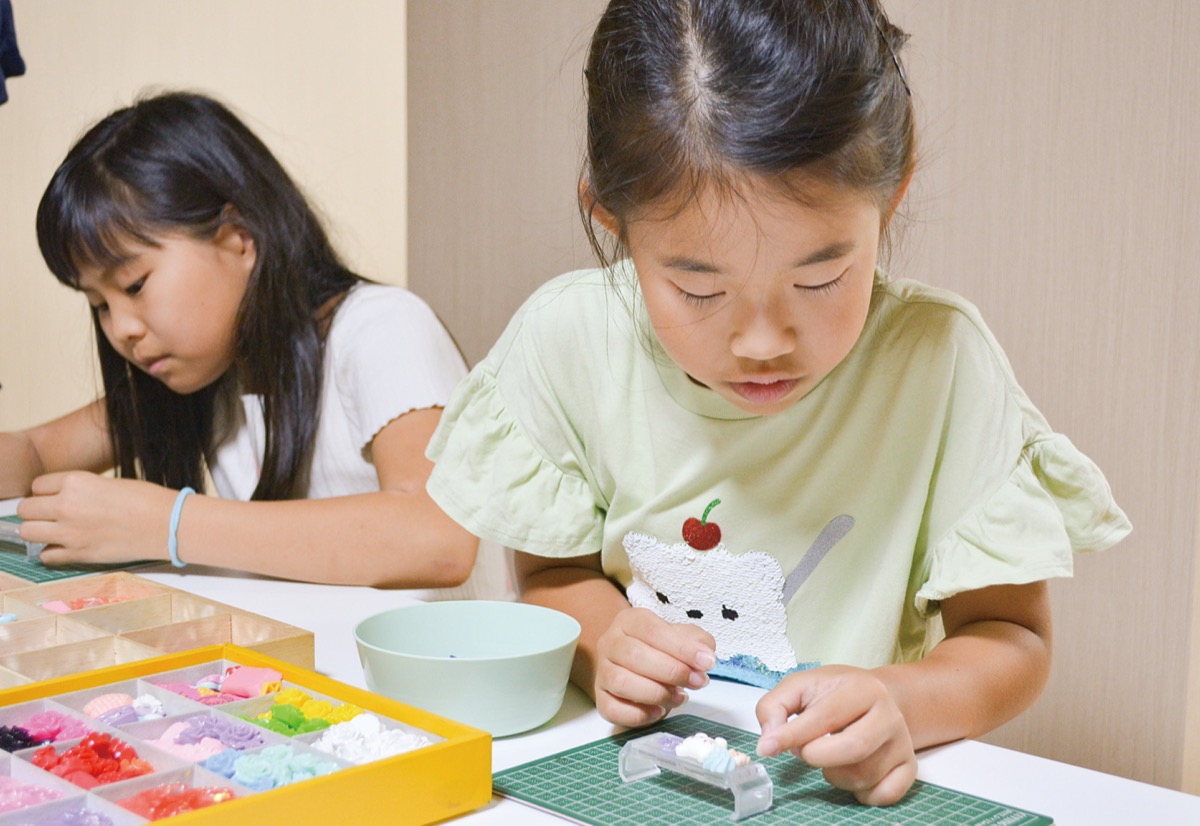7日には市内栄町のボタン、ソーイング用品専門店「白牡丹」でスマホクリップ作りが行われた。動物や花などさまざまな形のモチーフを選びレジンで固め、オリジナルの作品を完成させた。