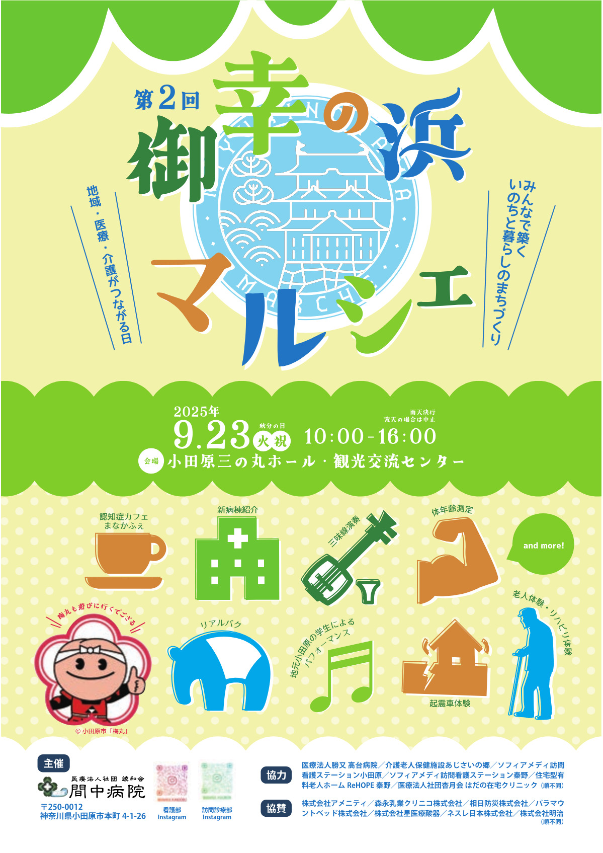 間中病院(小田原市本町)が9月23日(火)、小田原三の丸ホールと市観光交流センターで「第2回御幸の浜マルシェ」を開く。午前10時から午後4時。参加無料。