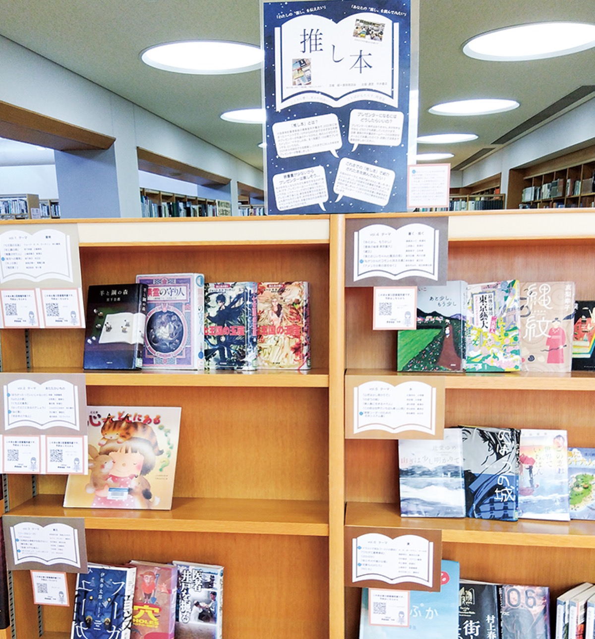 「推し本」はテーマに沿い、参加者が薦める一冊をプレゼンし紹介するイベント。今回は過去7回の開催時に紹介された本を、同館が2023年から開催している本棚のオーナー制度「一箱本棚」の一環として展示している。