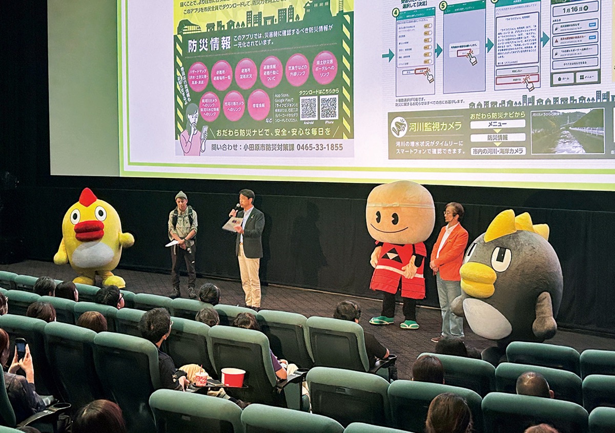 後半には加藤憲一小田原市長と市観光PRキャラクター「梅丸」もゲスト出演。加藤市長は「とても楽しい内容で、皆さんがより防災に関心を持ってもらえたのでは」と笑顔で感想を述べつつ、災害時に防災情報が入手できるスマートフォン向けアプリ「おだわら防災ナビ」の登録も呼びかけた。