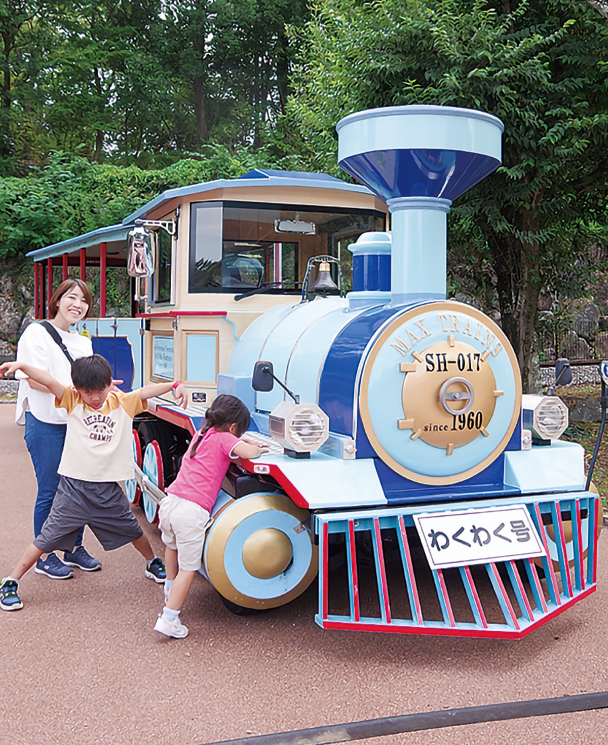わくわく号は2010年、西側の駐車場と園の中央にある「冒険の丘」を往復する車両として運行を開始。機関車仕様のデザインが人気で、これまでに老若男女68万人以上を運んできた。