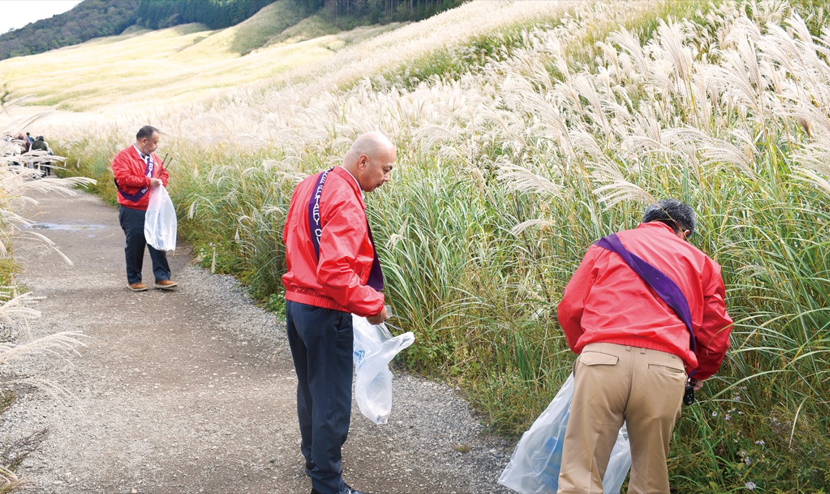同クラブでは、毎年芦ノ湖や箱根湯本など場所を変えて清掃活動を実施している。この日はお揃いのクラブジャンパーを着た20人ほどの会員が、草原の遊歩道や県道などに分かれてごみを拾い歩いた。
