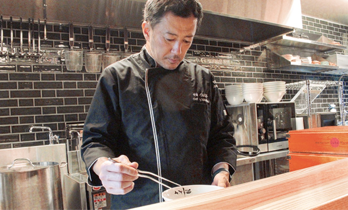 シェフは、ラーメン店として初のミシュラン獲得で話題となった「Japanese Soba Noodles 蔦(つた)」(代々木上原)出身の高嶋裕介さん。ランチは地鶏を使った濃厚スープと厳選醤油・塩が合わさった、職人技の本格的な「soba」、ディナーは炭火で焼き上げた宮崎県産の鶏・牛肉や自社農園の旬野菜や果実を活かした一皿が並ぶ創作コースを提供する。