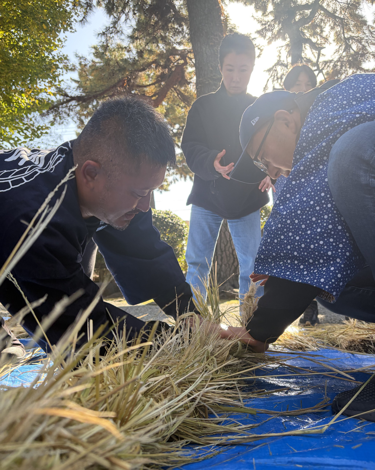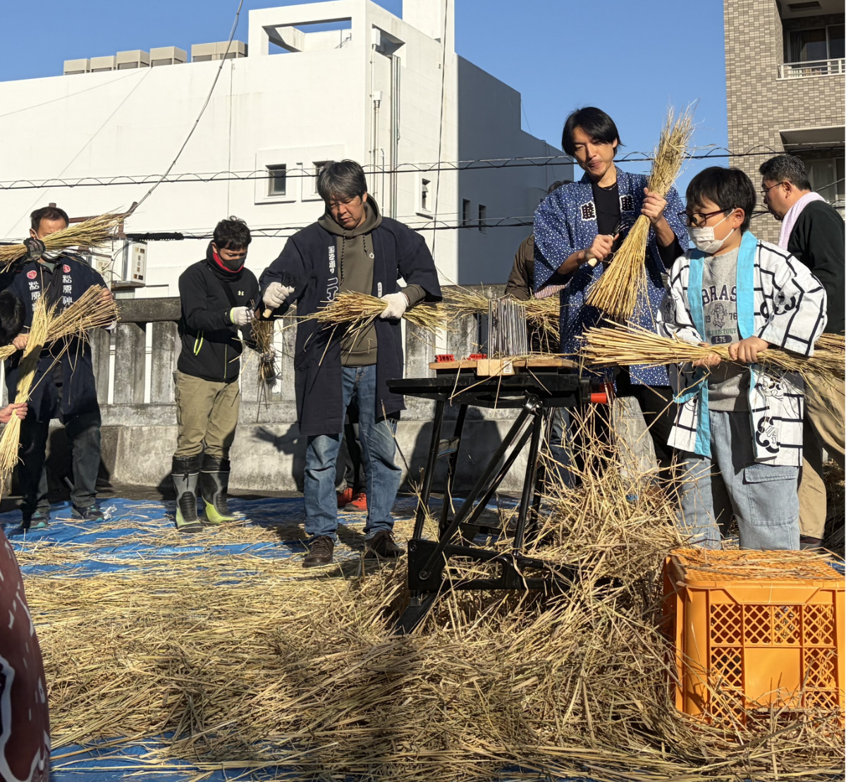 田んぼを提供している志村米穀店(小田原市浜町)の志村成則さんは「藁を一本いっぽんすいて、みんなで力を合わせて藁を撚ったたエネルギーがしめ縄に込められている。こういった米の文化を伝えていけたら」と話した。