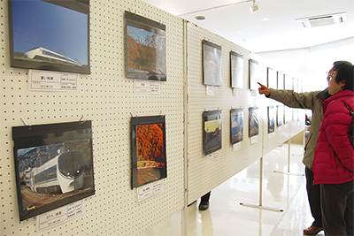 引退する371系とRSEあさぎり号を撮り続けてきた宮田直之さん(海老名市)と玉崎亨さん(平塚市)の記念写真展が、2月18日・19日に山北町中央公民館2階ギャラリーで開催された。渓谷や清流、富士山などの景色とともにあさぎり号が映る写真160点。来場者らは1点ずつに足を止めじっくりと眺めていた。