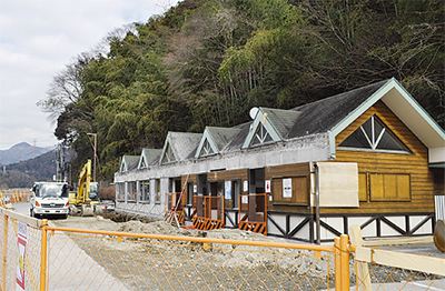 同施設は、県の道路オアシス事業等の一環として1997年7月にオープン。県道を挟んで東側に売店や食堂、トイレなどを備えた施設と駐車場があり、西側にも駐車場がある。今回の工事では建築から15年以上経過している東側の施設を建て直し、オストメイト対応トイレなどを設置。これまで敷地内にテントを張って地場農産物などを販売していたスペースにも建物を増築する。また駐車場台数も小型車用を15台から19台に増やす(大型車用、身障者用は増減なし)。県から施設の管理運営を委託されている清水地区振興協議会の山崎悟駅長は「新装開店にご期待ください」と話している。なお閉鎖期間中は仮店舗(山北町川西652の53、(株)小保木製作所敷地内)で、道の駅で販売していた農産物などが販売されている。問合せは「道の駅・山北」仮店舗直売所【電話】0465・77・2882。