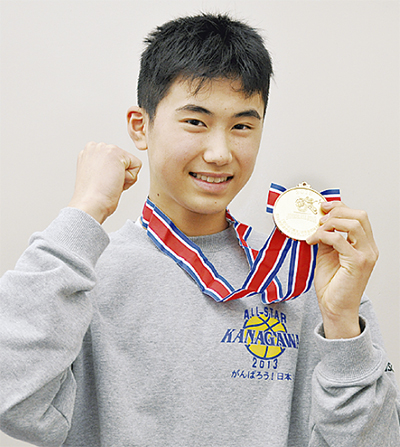 伊藤くんは身長178cm。アウトラインなどから切り込むスモールフォワードを担当した。県代表12人のうち1年生は2人だけで、県西地域からの代表は伊藤くんのみ。「プレッシャーはあったが、逆にやってやるぞという気持ちになった」と選抜時の心境を振り返る。直前の練習で負傷し、大会では決勝を含む3試合のみの出場となったが「チームに一体感があり、初めから日本一を目指していたので、優勝が決まった瞬間はみんな抱き合って喜んだ」と笑顔を浮かべ「来年も代表になり、2連覇を目指したい」と力強く抱負を語った。