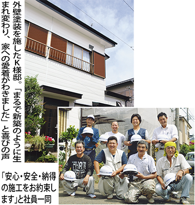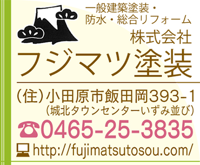 小田原市飯田岡の(株)フジマツ塗装(川上剛社長)は創業20年。「地元の皆さまに愛される塗装屋でありたい」がモットー。屋根や壁の塗り替えはもちろん、雨どいの修理や網戸の張り替えなどごく小さな作業まで、完全自社施工の徹底ぶりだ。「塗装だけでなく、住まいのメンテナンスのプロ集団であるという自負を持って、お客さまのお宅に伺います」と川上社長は話す。