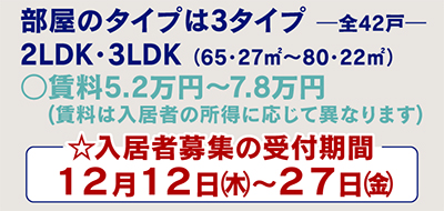 山北町(湯川裕司町長)がJR御殿場線・山北駅前に建設を進めている町営の定住促進住宅「サンライズやまきた」。来年3月の完成を前にし、入居者募集の受付が12月12日(木)〜12月27日(金)に行われる。12月15日(日)と22日(日)には、室内のイメージがわかるオープンルームが開催されるのでぜひ足を運んでもらいたい(※予約制)。時間は各日とも午前=10時〜11時30分、午後=1時〜2時30分。