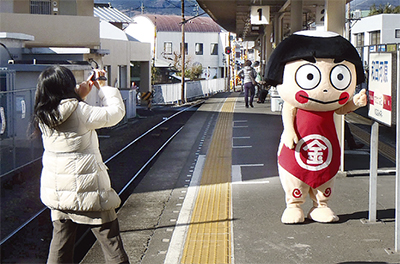南足柄市観光協会が動画投稿サイト「ユーチューブ」を活用した観光PRに取り組んでいる。第一弾として同市の金太郎キャラクターが大雄山線に乗って見どころを紹介する動画を昨年12月に撮影。1月中の公開に向けて編集作業が進められている。