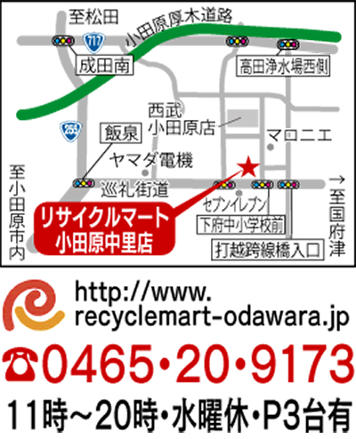 巡礼街道沿い、下府中小学校前交差点そばのリサイクルマート小田原中里店では、金・プラチナの買取りを強化中(ダイヤも含む)。