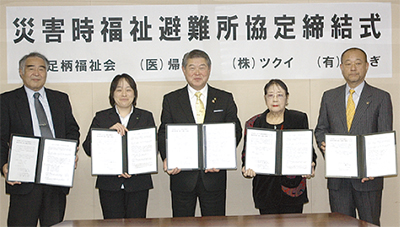 南足柄市が2月14日、市内で福祉施設を運営する4法人と「災害時における福祉避難所としての施設利用等に関する協定」を締結した。同様の協定は、2012年の2法人に続き2例目。